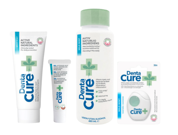 Korzystaj ze skutecznych i naturalnych produktów do pielęgnacji jamy ustnej! Przedstawiamy szereg produktów DentaCure, których skuteczności dowiedziono w przypadku takich dolegliwości, jak: Krwawienie dziąseł Zapalenie dziąseł Kamień nazębny Zmiany w jamie ustnej Ból dziąseł Produkty DentaCure pomagają zapobiegać i leczyć zapalenie dziąseł, które może rozwinąć się w paradontozę, jeśli zostanie zignorowane. Pasta do zębów DentaCure, 75 ml Łagodny posmak mięty Skutecznie eliminuje krwawienie dziąseł Łagodzi stany zapalne dziąseł Zmniejsza kamień nazębny Zawiera fluor, który przeciwdziała próchnicy Nie zawiera niepożądanych substancji chemicznych Produkt testowany klinicznie PLN 0.00 WKRÓTKO DOSTĘPNE Płyn do płukania jamy ustnej DentaCure, 480 ml Łagodny posmak mięty, zapewnia świeży oddech Właściwości przeciwzapalne Z wyciągiem z nasion kozieradki Zawiera fluor (1450 ppm) Delikatny dla błon śluzowych Nie zawiera alkoholu Wstrząsnąć przed użyciem, aby rozprowadzić aktywne składniki PLN 0.00 WKRÓTKO DOSTĘPNE Intensywny żel DentaCure, 25 ml Łagodny posmak mięty Właściwości przeciwzapalne Z wyciągiem z nasion kozieradki Z kwasem hialuronowym o właściwościach kojących Zawiera fluor (250 ppm) Delikatny dla błon śluzowych Nie zawiera alkoholu PLN 0.00 WKRÓTKO DOSTĘPNE Nić dentystyczna DentaCure, 30 m Skutecznie eliminuje krwawienie i zapalenia dziąseł Codzienne oczyszczanie przestrzeni między zębami Właściwości przeciwzapalne Zawiera fluor PLN 0.00 WKRÓTKO DOSTĘPNE Zestaw „Razem lepiej” Wszystkie skuteczne i naturalne produkty DentaCure, które przeciwdziałają krwawieniu i stanom zapalnym dziąseł. PLN 0.00 WKRÓTKO DOSTĘPNE